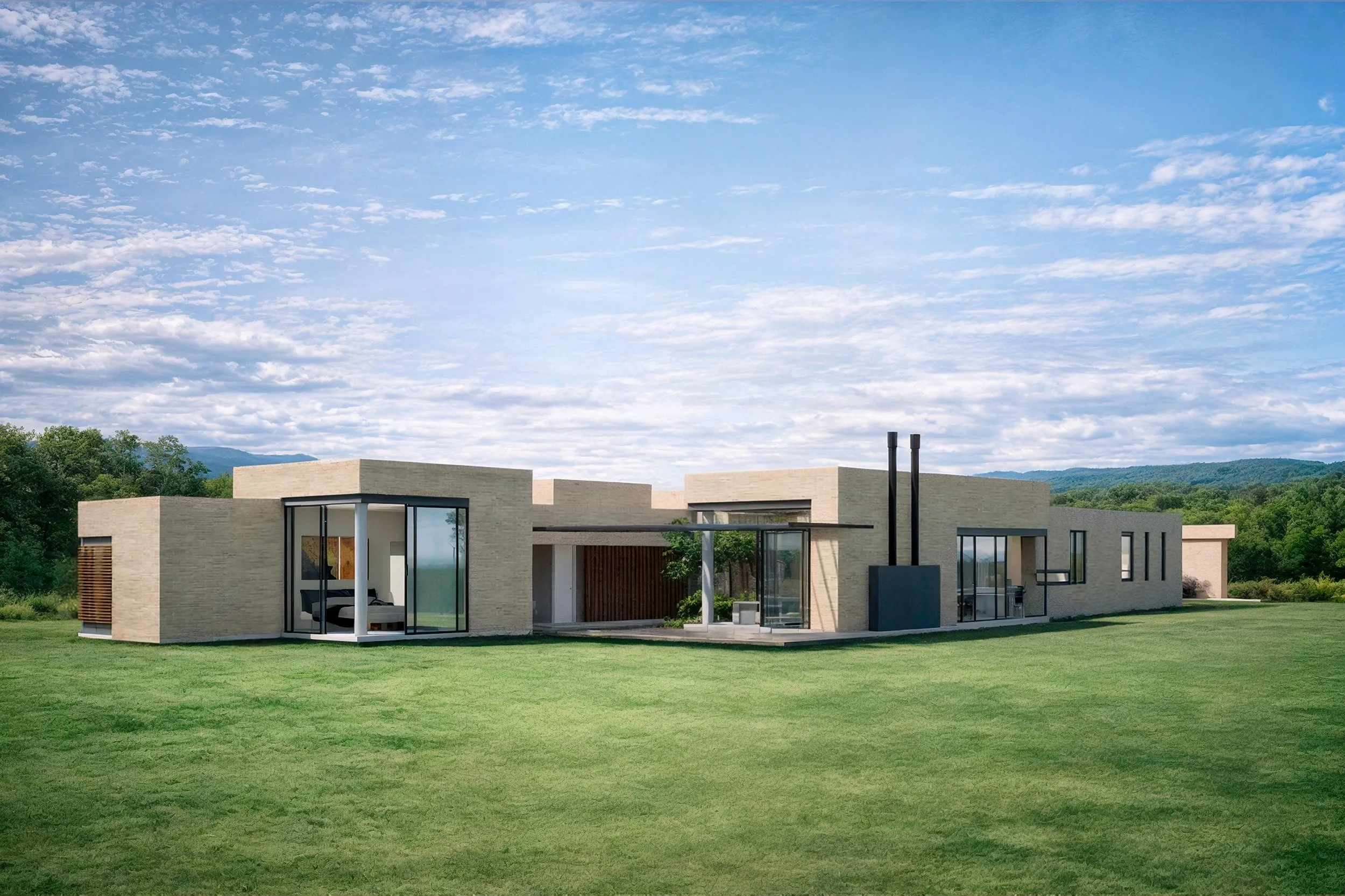 Volúmenes horizontales, materiales nobles y aperturas controladas construyen una arquitectura silenciosa, donde la luz natural define el ritmo de cada espacio.